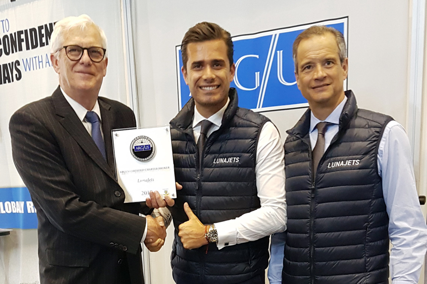ARGUS International, Inc. is pleased to present LunaJets, the first charter broker outside the United States to earn the ARGUS Certified Charter Broker rating, with the renewal of their certified rating at the 2018 European Business Aviation Convention & Exhibition (EBACE) in Geneva, Switzerland.
