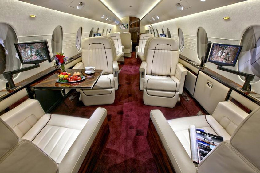 Designed by Robin Dunlop, the cabin interior is configured with 12 executive club seats, four crew seats, and six inflatable beds. A full-cabin, “tuned” passive noise reduction system provides a particularly comfortable in-flight experience. Meanwhile, the custom-designed Control Concepts entertainment system ensures everyone can relax and enjoy, with individual 10-inch monitors, fore/aft 14-inch monitors, a credenza pop-up 31-inch TV, dual AVOD movie storage (500 movie capacity), a blue ray player, Xbox video game console and player, internal and external audio input sources, high-speed internet, and a complete surround sound system.