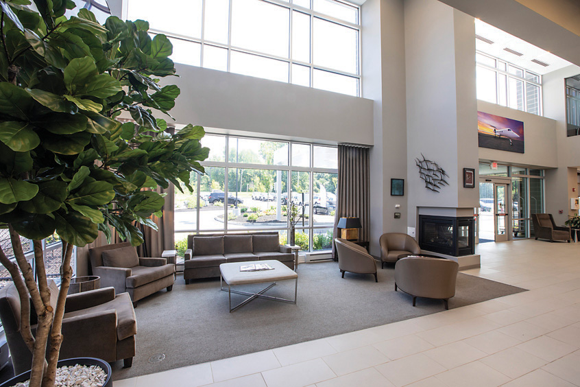 “We've applied a new, warmer colour scheme and some new wall coverings, in addition to replacing all of the temporary furnishings, décor and design elements that were here when we opened the new FBO last year,” Day continues. “We changed the feel and the experience of the FBO. It's more modern, but still cosy and comfortable. And some of the accents pieces are kind of funky, and that's a fun touch. We call it 'cosy chic,' and we're inviting all of our customers to come in and enjoy the new look.”