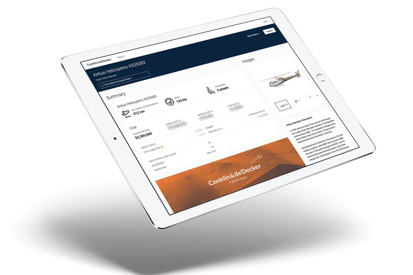 Following JSSI's acquisition of Conklin & de Decker in 2018, the company relaunched its popular suite of products and services. The new mobile app and online report integrate Aircraft Cost Evaluator, Conklin & de Decker's flagship product for more than 30 years, with key performance data and imagery from the company's powerful Aircraft Performance Comparator. In addition, the tools incorporate the AircraftPedia database to create a comprehensive and dynamic browsing experience for the helicopter market. Recent updates to the Conklin & de Decker Report include more options to customise specific data, and mobile users can now purchase single reports from the mobile app.