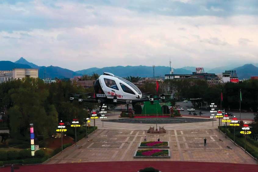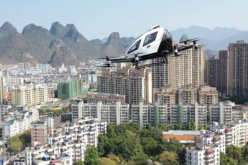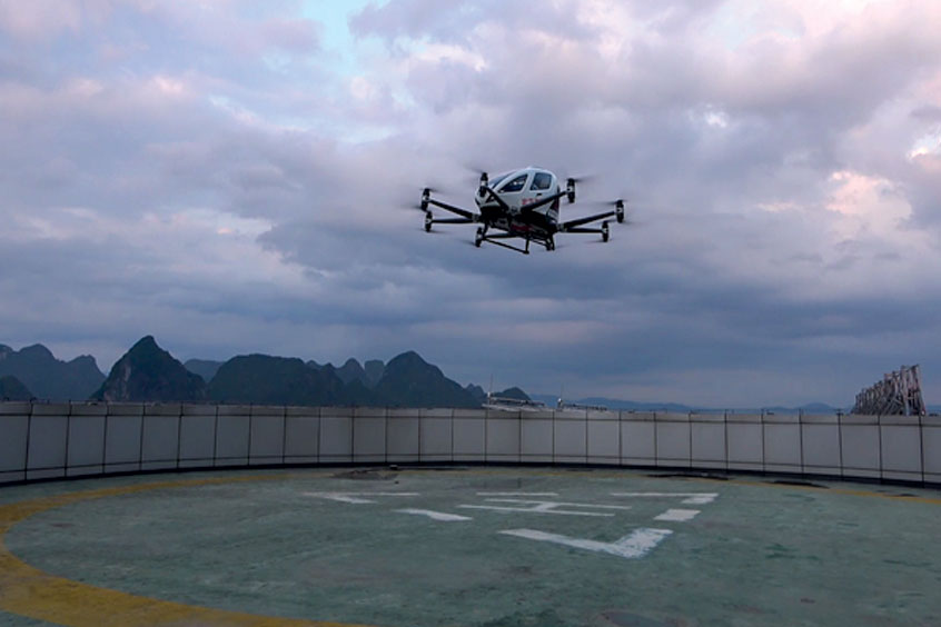 In recent exercises for the prevention and control of the coronavirus epidemic organised by the local authorities of Hezhou city in Guangxi province, an EHang 216, the two-seat passenger-grade AAV successfully transported medical supplies from Hezhou Square to the Hezhou People's Hospital, which are four kilometres apart, by accurately landing on the 25-storey rooftop of the hospital.