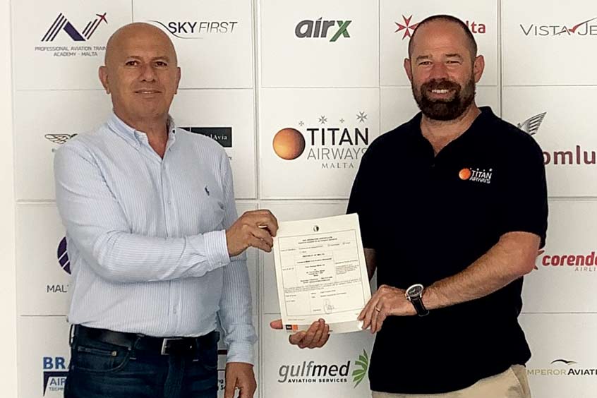 "Titan Malta has shown great ambition and eagerness to obtain the necessary certification from the Civil Aviation Directorate. Malta should be proud to add such a big company to our island. I would like to thank the company for having faith in us and investing in Malta and also thank all inspectors who worked diligently to meet the set targets within the timeframes," commented Cpt Charles Pace, director general of the Maltese Civil Aviation Directorate.