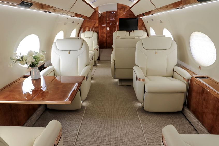 Inside the aircraft, Duncan Aviation's design team led by senior lead designer Molly Pfeiffer delivered a comprehensive refresh while preserving the original wood, upper sidewalls and countertops.