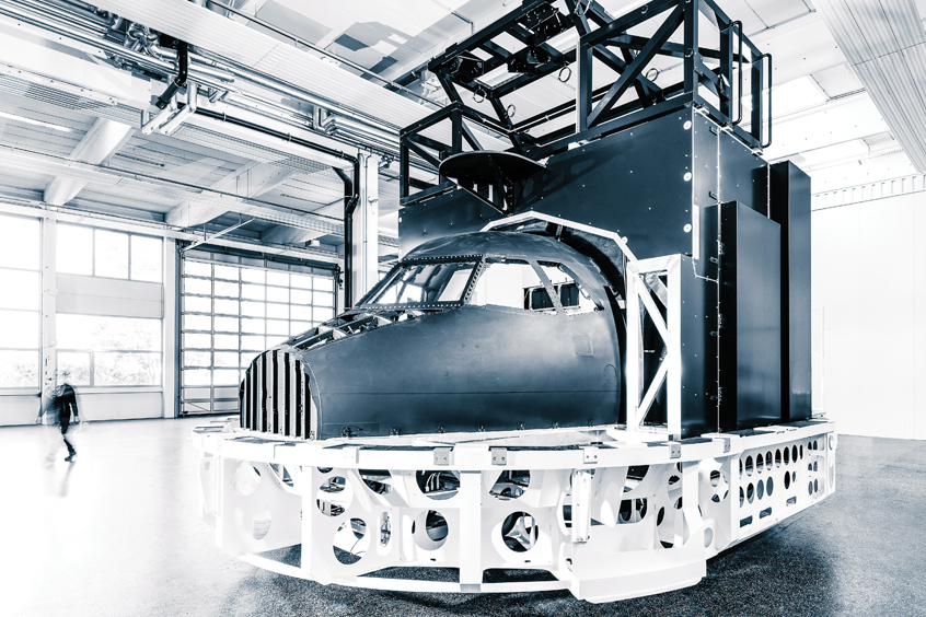 The next stage requires the outer part of the nose section to be cut to size, removing the back for access and the underneath to create a flat surface. It is then cleaned, sand-blasted and painted black to minimise reflection from the mirror. The whole thing is then put together again with original parts and any new OEM parts that were ordered. "Then the real fun begins," says Theuermann, "combining the hardware and the software we have developed to ensure we replicate the exact cockpit conditions of the aircraft simulator type we're manufacturing."
