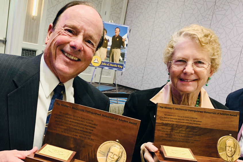 At the National Aeronautic Association Fall Awards Dinner on November 27, 2018, the association added four more individuals to its list of Distinguished Statesmen of Aviation. The list now includes Mark Burns, president of Gulfstream Aerospace Corporation, and most unusually, the husband and wife team of John and Martha King, co-chairmen of King Schools.