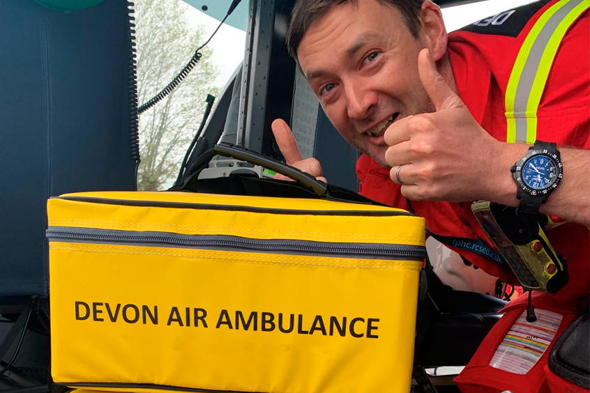 “We hold enough LyoPlas at our airbases to treat three or four patients,” adds Hare. “When we have administered some, Devon Freewheelers, a charity specialising in supporting healthcare providers with volunteers who move blood products and other urgent items around the county to support patient care, collect replacement LyoPlas from the Blood Bank and deliver it to our airbases.