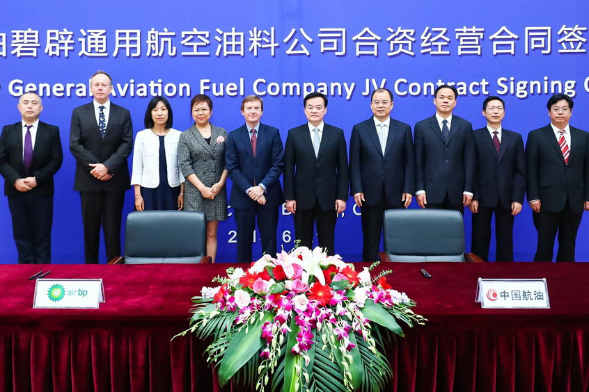 The agreement was signed by Alan Wilson, China strategic project director of Air bp and Shi Haiping, executive director of CNAF GA Development Company Ltd and witnessed by Jon Platt, CEO Air bp, Xiaoping Yang, BP China chairman and president, Zhou Qiang, chairman of CNAF and Xi Zhengping, general manager of CNAF.