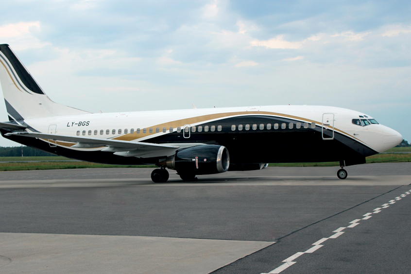 One of the newcomers, LY-FLT, is a uniquely designed Boeing 737VIP with a versatile business class cabin, transformable between 68 and 104 business class seats, while LY-BGS is an economy class Boeing 737-300 with 148 seats. It is painted to look the same as KlasJet's LY-KLJ. After the summer season, its interior will be modified and turned into a 68-seat business class cabin.