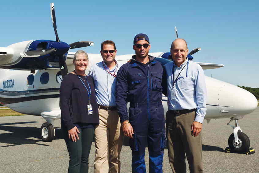 There were fuel stops in five different countries. The first was at Groningen airport in the Netherlands, followed by Inverness in Scotland and Reykjavic in Iceland. Next came Narsarsuaq in Greenland, one of the world's most demanding airports because landing requires the approach to the runway through a fjord, surrounded by mountains and glaciers. Final refuelling was at Goose Bay airport in Canada, before they headed due south to Barnstable airport in Hyannis, Massachusetts. There they were greeted by Cape Air executives, founder and CEO Dan Wolf, president Linda Markham and senior vice president, fleet planning and acquisitions James Goddard.