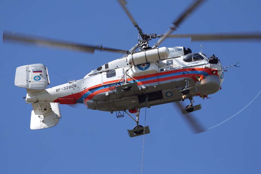 The technical solutions in the avionics of the Ka-32A11M helicopter have already been tested on the Ansat, Mi-38 and Ka-62 civil multipurpose helicopters. Compared to its western counterparts, the new SP-32 water tank made in Russia is said to have a more attractive price and can carry up to four tonnes of water. It also has digital control and upgraded water intake and discharge ergonomics. In addition, it can be operated at sub-zero temperatures.