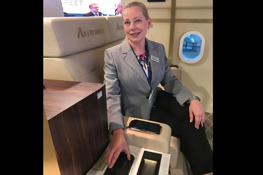 “Business jet and VIP travellers expect the luxuries of home in their aircraft, right down to how they keep their newest phones and tablets charged,” explains director of business development for airborne power and control Christine Ellis. “Our wireless charger is flight-proven and integration-ready to bring an upscale touch to your next business jet programme.”