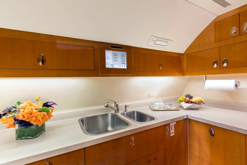 The BBJ features an 18-passenger configuration with luxurious and expansive layout for travelling to nearly anywhere in the world. The custom interior features a master bedroom with a large bed, shower with exclusive steam feature, conference group, lounge area and three lavatories. It has just received a beautiful new paint job, has stunning interior accoutrements, and is currently the only BBJ with GoGo 2Ku fully worldwide high speed Internet connectivity. All monitors have Apple TV for streaming and Sling TV for live TV. The galley is equipped with a wine chiller, two microwaves, oven and De'Longhi coffee/espresso maker.