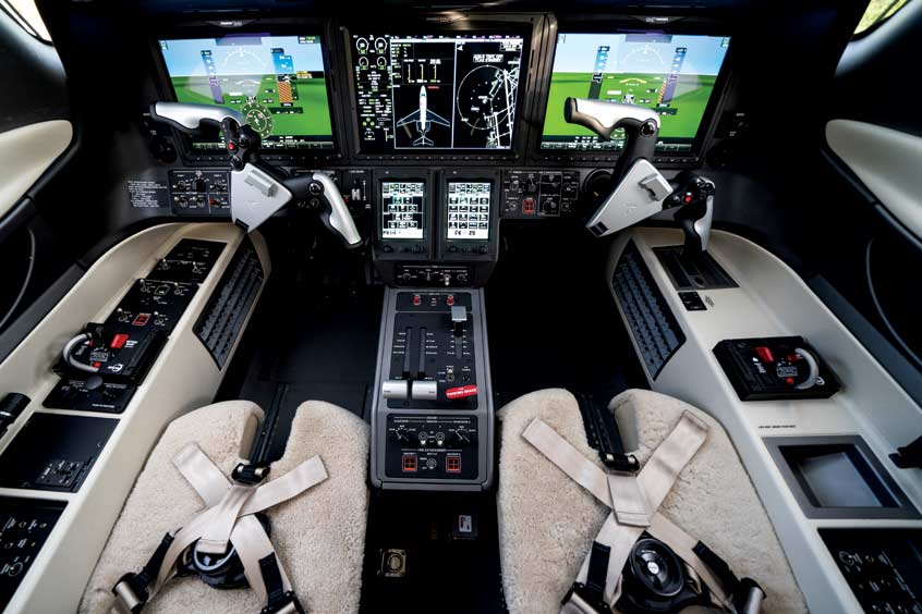 In the cockpit, pilot and co-pilot seat tracking has been increased by almost 40 per cent, providing additional legroom. The cockpit enables single-pilot operation and offers the advanced Prodigy Touch flight deck, based on the acclaimed Garmin 3000 avionics suite. The avionics enhance situational awareness with clear information about speed, altitude, fuel, engine performance and other flight parameters. Additionally, the Phenom 300E offers 4G connectivity via Gogo Avance L5.