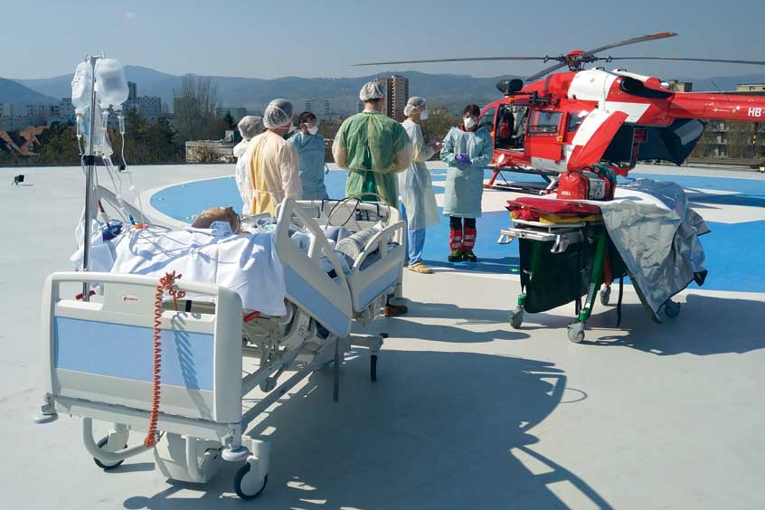 Around two thirds of these secondary transports were so-called intensive care special transports of artificially ventilated Covid-19 patients. During the transfer to the intensive care unit of a hospital, the Rega crew connects the patients to a mobile ventilator that ensures the oxygen supply for the entire duration of the transport. All Rega helicopters are equipped with the latest mobile ventilation devices that meet the latest standards and are specially certified for use in rescue helicopters.