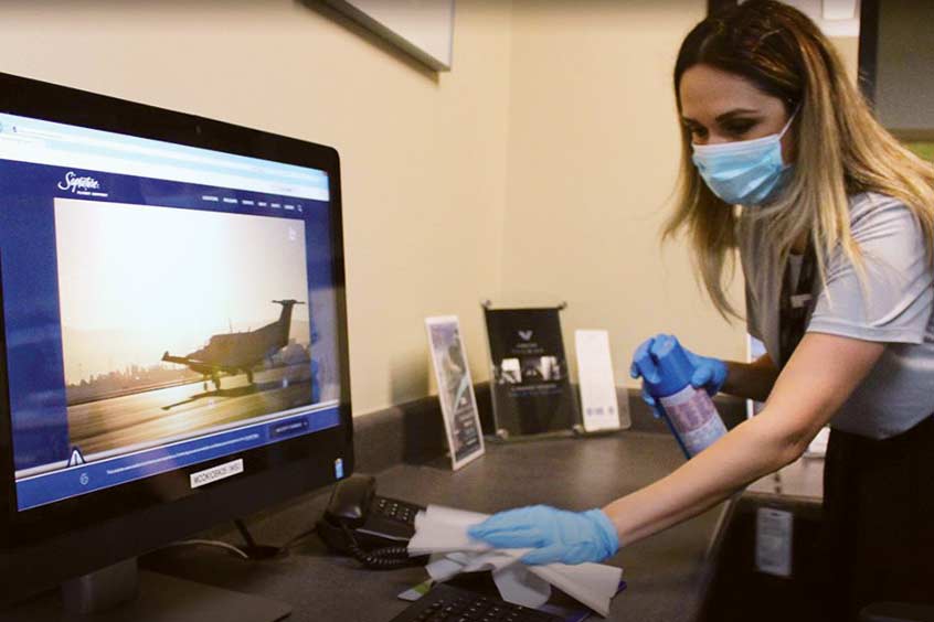 To ensure the wellbeing of both team members and visitors, Signature has made a number of modifications to FBO facilities and enhanced its standard operating procedures. These include implementing a comprehensive 50-point cleaning checklist, which is completed multiple times a day. These rigorous cleaning procedures are supported by using electrostatic sprayers at high-traffic Signature FBO locations, allowing large areas such as lobbies, lounges and vehicles to be sanitised quickly through the use of a sterile fog.