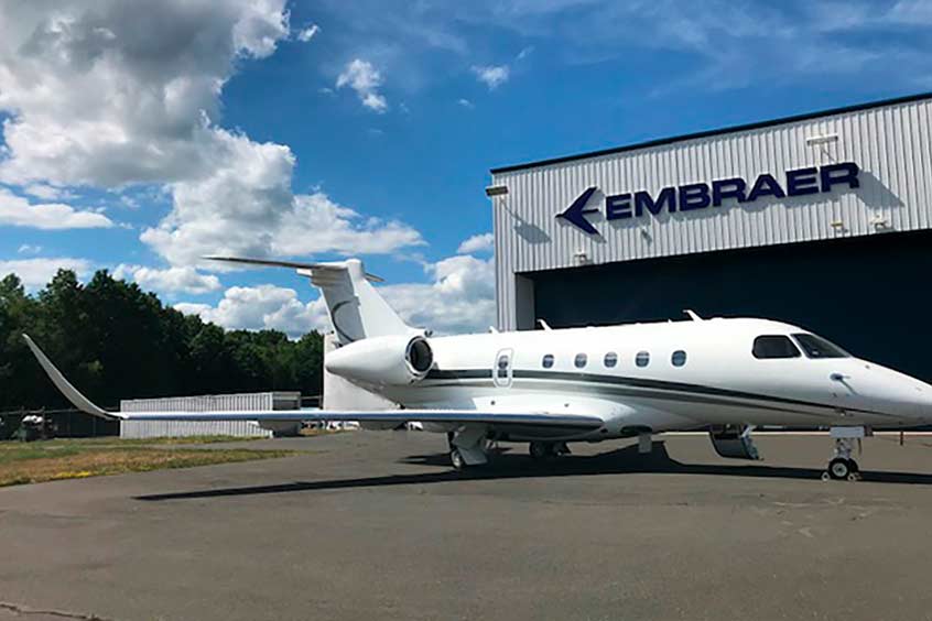 Embraer Services & Support has completed the first conversion of a Legacy 450 to a Praetor 500 for an undisclosed customer. The conversion was performed at the Embraer Executive Jets service centre at Bradley International airport in Windsor Locks, Connecticut.