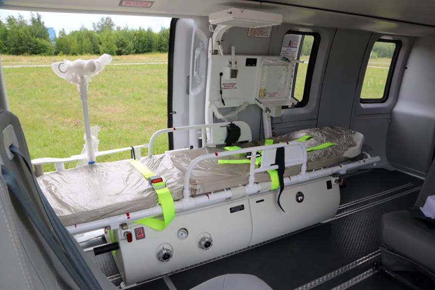 Ansats are already deployed in rescue services, making regular medevac flights in different regions of Russia. Ansat medical helicopters equipped with ventilators are taking an active part in the fight against COVID-19 throughout the country. To simplify the transportation of patients with coronavirus infection, The Federal Air Transport Agency granted approval in May 2020 for the Ansat to be equipped with patient isolation units. In the aeromedical version, the helicopter cabin has space for transporting one patient and two seats for accompanying doctors.
