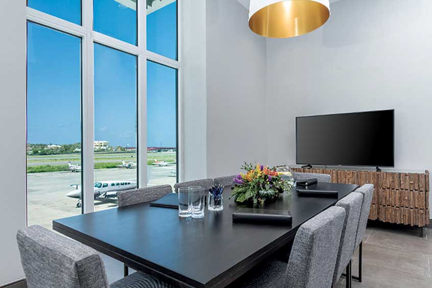 Standard's new facility includes a 24,000 sq ft hangar, a lobby and crew amenities. This location can handle nearly any aircraft with around-the-clock call out service, customs clearance available 24/7 and a sizeable hangar that is the largest free-span building in the Caribbean. Designed with pilots in mind, the Standard Aviation facility is complete with a crew rest area, well-appointed flight planning room and extra amenities like a full kitchen, laundry machines and dishwashers.