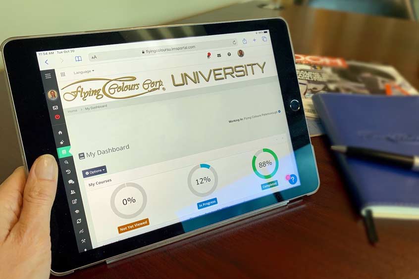 North American MRO Flying Colours has introduced a new digital training programme to support the company's continuous improvement policy. The in-house eLearning platform is designed to deliver a long-term solution for sharing knowledge and skills across the company. Implemented pre-pandemic, the online training is proving to be a valuable asset, with more than 100 employees across the three Flying Colours locations in Canada, the USA and Singapore accessing courses. Flying Colours has appointed qualified AME technician and long-time employee Spencer Hoggarth to lead the programme. With his professional experience, technical know-how and familiarity with the business, Hoggarth is designing modules that best meet the varied needs of the company's training requirements from upholstery and cabinetmaking through to maintenance, avionics and paint work.
