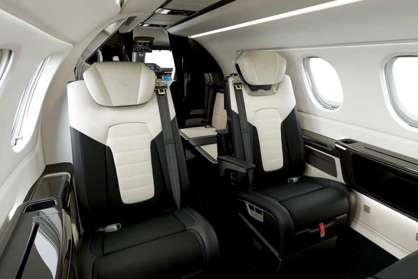 The exclusive collaboration logo is embossed on the seat headrests of the aircraft and debossed on the seat headrests of the car, as well as featured on the aircraft side ledge, speaker grills and mounted near the main door. Each pairing also features a special badge, representing one of only ten delivered. The customer will have the option to select the location of a blue chip, reflective of their position among the ten units, according to their preference.