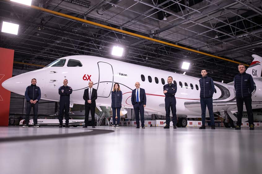 “Today's rollout is a significant achievement. I am very pleased to present the addition of an all-new aircraft design within the Falcon family, the ultra widebody Falcon 6X,” says Dassault chairman and CEO Eric Trappier. “The challenges posed by the COVID-19 pandemic required exceptional perseverance and cooperation on the part of Dassault and its partner companies.”
