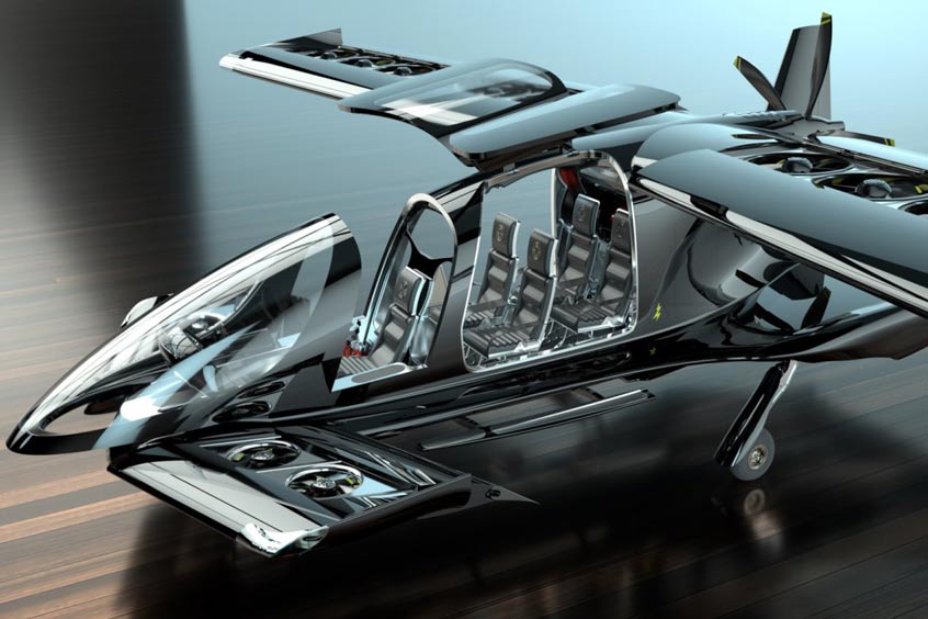 Canadian company Horizon has developed the prototype Cavorite X5, an eVTOL travelling up to an estimated speed of 450 km/h with a 500 kilometre range and a five passenger capacity. The vehicle has been designed to have reduced hydrocarbon emissions and be built for operational realities including bad weather, traffic avoidance and low-time pilots. Its patented fan-in-wing patent enables the Cavorite to be the world's first eVTOL that can fly the majority of its mission like a regular aircraft.