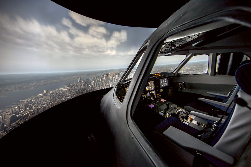 The en-1000 FNPT II is a SEP/MEP reconfigurable simulator with an exchangeable glass/analogue cockpit. The en-4000 FNPT II MCC is SEP/MEP/jet reconfigurable. The jet version is very close to an Airbus A320, featuring sidesticks for realistic APS MCC training. This unit also has a vibration system that enhances the realism of the simulation.
