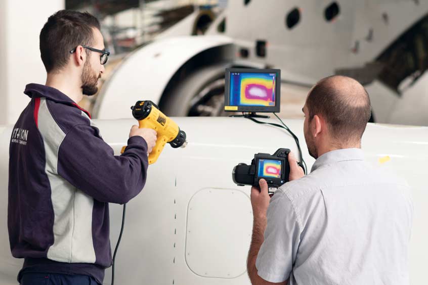 Used to detect heat or thermal energy from an object, infrared thermography is a highly sensitive and reliable method of non-destructive testing that converts heat energy to a temperature, which can then be depicted as an image of temperature distribution. It is the same technology used in night vision goggles and is also employed in medical science to detect irregularities such as cancer and chronic disease. In aviation, it is typically applied to the airframe and components to test structural integrity.