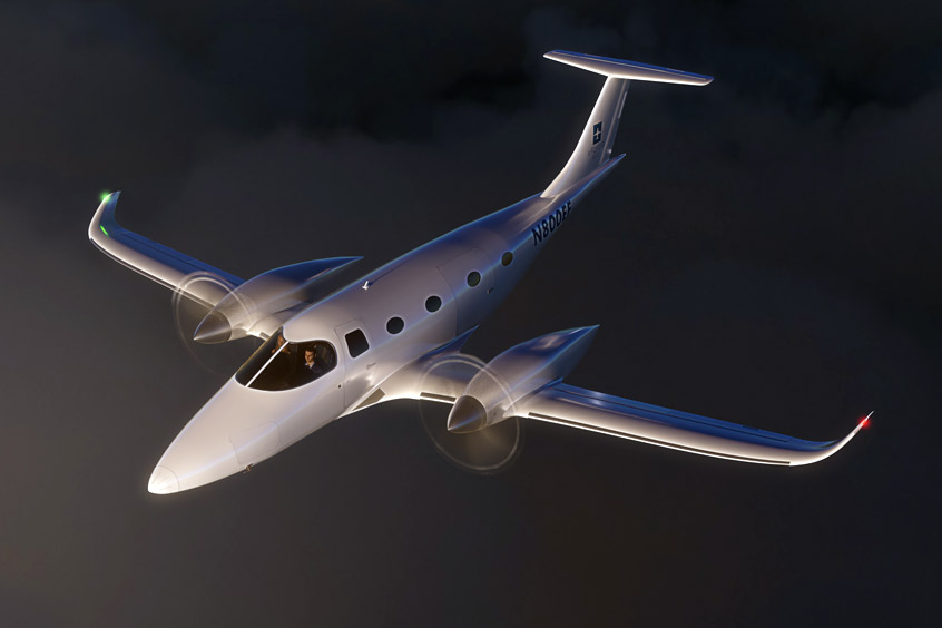 “The eFlyer 800 is the first all-electric propulsion technology aircraft that achieves twin turboprop performance and safety with no CO2 and extremely low operating costs,” says CEO George E. Bye. “This type of remarkable economy and performance is made possible by the electric propulsion system and advanced battery cell technology that results in significantly higher energy densities.”