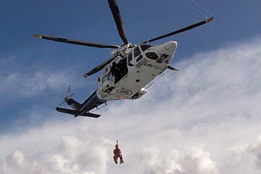 The Land Rover LifeFlight Special Mission helicopter performed this training exercise as it is currently, temporarily based on the Sunshine Coast, while the familiar blue and yellow RACQ LifeFlight Rescue helicopter undergoes scheduled engineering.