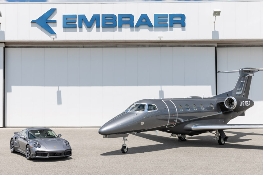“We designed Duet in collaboration with Porsche to introduce a seamless travel experience for those wanting to arrive in something totally original, while holding true to our vision of delivering the ultimate experience in business aviation,” says Michael Amalfitano, president and CEO of Embraer Executive Jets. “The Phenom 300E is already the best-selling light jet in the world, and we continue to push the boundaries to provide even more value and bring new experiences to our customers.”