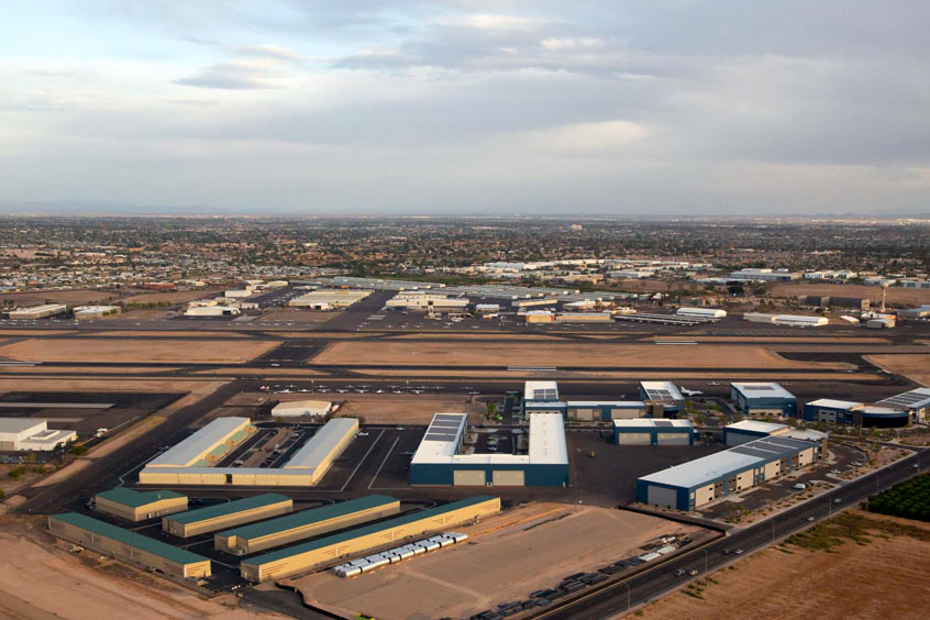 The development includes a 5,000 sq ft FBO terminal, more than 500 sq ft of leasable office space and 11,000 sq ft of hangar space with plans to expand to accommodate a growing customer base at the Mesa airport.