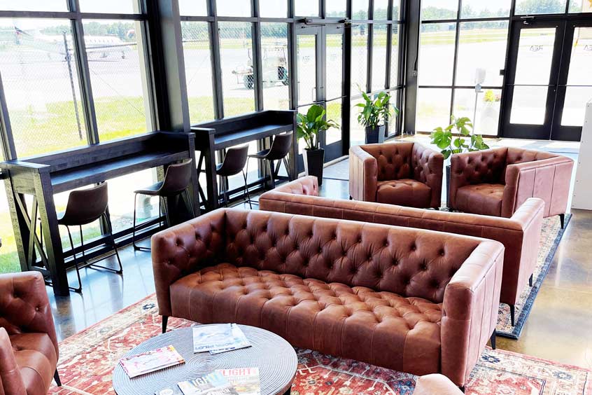 Richmond Executive Aviation (REA) has launched a new premier FBO at Richmond Executive-Chesterfield County airport in Richmond, Virginia. The $2.5 million investment includes an 800 sq ft FBO terminal, 1,700 sq ft of office space and 20,000 sq ft of hangar space able to accommodate aircraft up to a Gulfstream G450. The facility combines modern, industrial architecture with comfortable, natural elements for an inviting atmosphere. It is complete with all the amenities required of travellers and aviation enthusiasts, including a meeting space with seating for 15 and full AV, a pilot lounge, a pilot planning area, flight training classrooms, a concession bar, wi-fi and charging stations, and a well-appointed lobby with floor-to-ceiling windows overlooking the ramp and into the hangar.