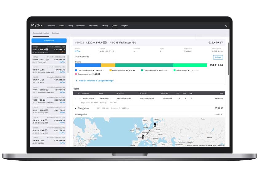MySky is launching Quote a predictive costs tool that will allow charter operators, pilots, family offices and corporate flight departments to forecast the cost of a flight. MySky claim Quote generates an estimate with more than 96% accuracy for each leg of a charter mission in under 10 seconds.