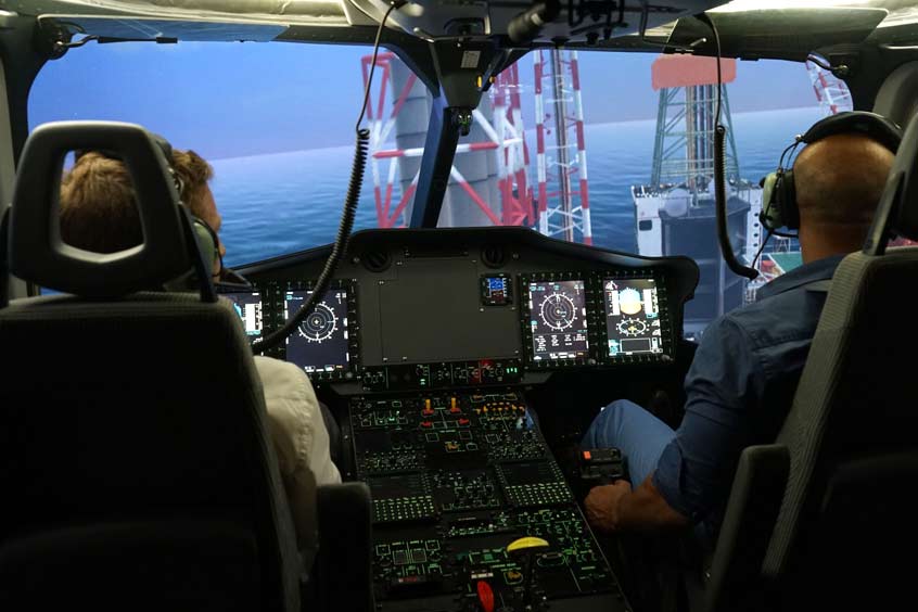 The pilots can define the most effective strategies to follow and drill until they perfect them. They can train for a wide variety of missions, including evacuation on offshore platforms, water landings, mountain search and rescue operations, wildfire suppression missions or evacuation operations after natural disasters.