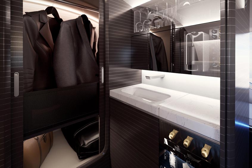 All-electric aircraft manufacturer Eviation has introduced the design for the executive cabin version of its Alice aircraft. It features a fully equipped galley with lavatory and sink; a cabin measuring six feet, four inches across; a wardrobe; side panels at each seat with a foldable table, personal power outlet and USB slot; panoramic, 22 x 16.5 inch windows; and a baggage compartment of 100 cubic ft with a total baggage allowance of 850 lbs, spacious enough to accommodate skis, golfing equipment or bicycles. It is also ultra quiet, less noisy by a factor of more than 100 during take off and cruise compared to jet-fuelled counterparts according to the company. The pressurised aircraft has a payload of 2,500 lbs and a range of around 500 miles.
