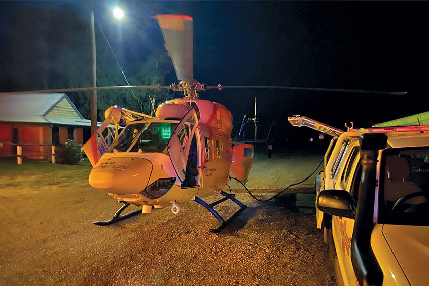 In a recent mission to Kynuna to help a patient in a vehicle rollover, the SES towed the fuel trailer while the RACQ LifeFlight Rescue crew flew non-stop to the scene.