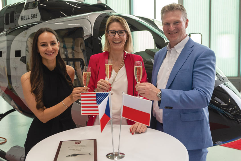 Bell Textron has signed purchase agreements for seven Bell 505 helicopters with European customers. Two of these were signed by Bell's independent sales representative JB Investments, the longest-operating distributor of light aircraft in Poland. The signing ceremony was held in Prague with JB Investments board member Magdalena Karska and Bell Europe managing director Duncan Van De Velde in attendance.