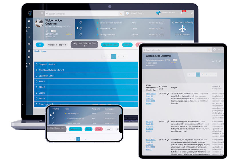 “Bluetail is building an impressive customer list of charter operators, and they rely on our software innovation team to create a way for them to handle all of their conformity requirements more efficiently and effectively. The result is MACH Conformity, purchased as a software subscription, which includes new features such as task management, an FAA binder builder, manage AD and SB lists, deep search, with the ability to digitally paper clip any FAA forms to other documents, and export the resulting binder for sharing with the appropriate FSDO.”