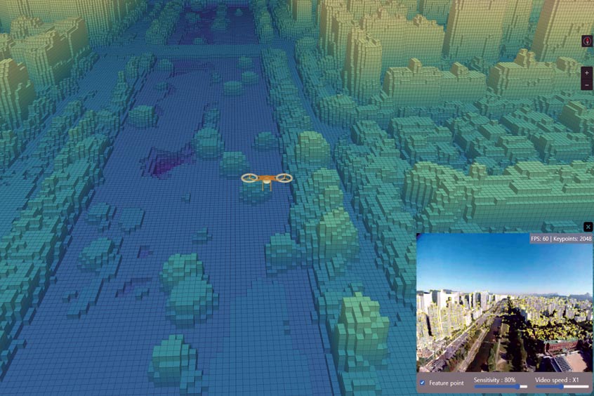 The 4D AAM map was constructed by voxelising urban buildings and airspace. The map provides a precise flying corridor for UAV and AAM routes, enables emergency route change and prevents collisions with obstacles such as high-rise buildings. Furthermore, the map provides real-time updates of airspace information, critical for the safe operation of remote piloted or autonomous flights.