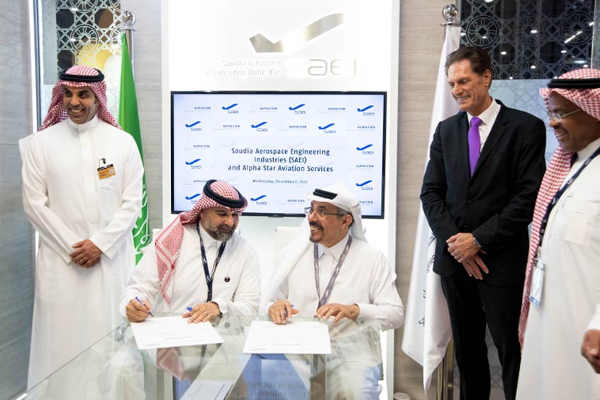 Riyadh-based Alpha Star Aviation Services has entered into an agreement with Saudia Aerospace Engineering Industries (SAEI) for aviation maintenance to support Alpha Star's fleet of private jets, and to build capacity for its future expansion to business jets.