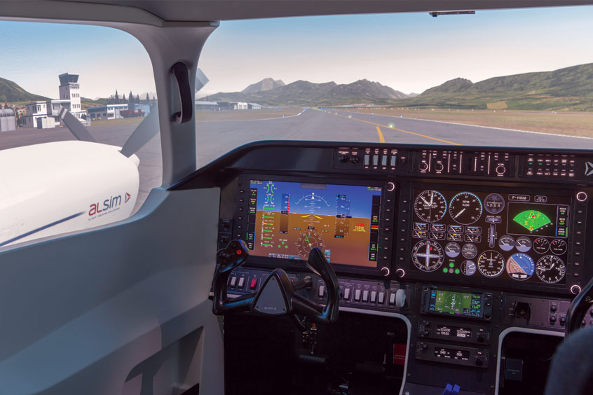 The AL250 simulator addresses initial phase training needs (PPL, CPL, IR/ME) and is a SEP/MEP reconfigurable simulator certified as an EASA FNPT II. In addition, it offers both classic and glass cockpit instrumentation for each flight model at the simple flick of a switch. This device has been extremely well received since its creation, and more than 80 of these have already been installed and are in successful operation worldwide.
