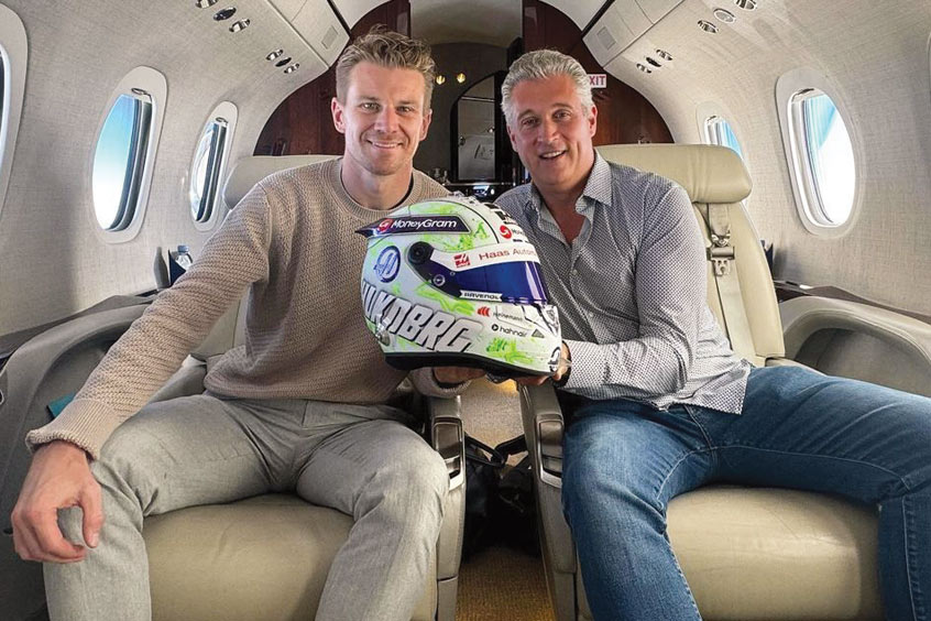 Formula 1 driver Nico Hülkenberg will be displaying the Hahnair logo on his helmet throughout the 2024 racing season. Hahnair is a Germany-based charter operator and distribution partner for airlines worldwide, and Hülkenberg will travel to his races with the operator's top-tier business aircraft and crew.