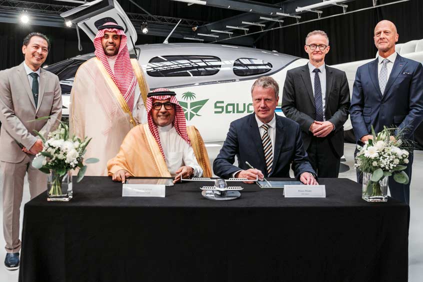 Saudia Group and Lilium have signed a binding sales agreement for 50 Lilium Jets, with options for the purchase of 50 more. The signature ceremony was held at Lilium's HQ in Gauting near Munich, with the contract signed by Fahd Al-Jarbou, CEO of Saudia Private, representing Saudia Group, and Lilium’s CEO Klaus Roewe, in the presence of distinguished guests including the German Ambassador to the Kingdom of Saudi Arabia Michael Kindsgrab, director general of Saudia Group HE Engr Ibrahim Al-Omar and Lilium chairman Tom Enders.