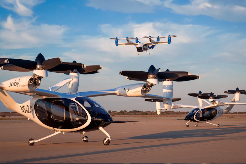 Joby's electric air taxi is designed to carry a pilot and four passengers at speeds of up to 200mph, offering high-speed mobility with a fraction of the noise produced by helicopters and zero operating emissions.