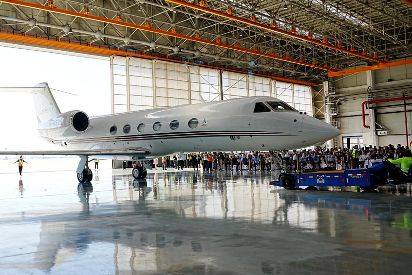 ExecuJet Haite's Daxing MRO is 7,150sqm, including a 5,000sqm air conditioned and heated hangar as well as ultra modern office space and extensive backshops. The hangar can accommodate eight mid-size to large business jets simultaneously, and the MRO facility provides line, AOG support and heavy maintenance for various aircraft types from Bombardier, Dassault Aviation, Embraer and Gulfstream.