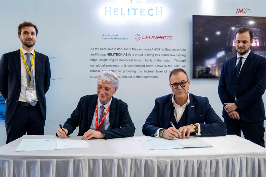 The signing ceremony took place at Helitech Asia's booth B15 at the Bali Air Show, with key executives from both companies present.