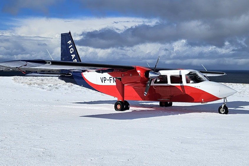 FIGAS has been an integral part of Falkland life since 1948. Its existing fleet of five Islanders serve a variety of roles and are essential in keeping the Falklands and its more remote communities connected. In addition to commuter flights, regular missions include air ambulance, post carrier, freight, veterinary transport, environmental monitoring and scenic flights.
