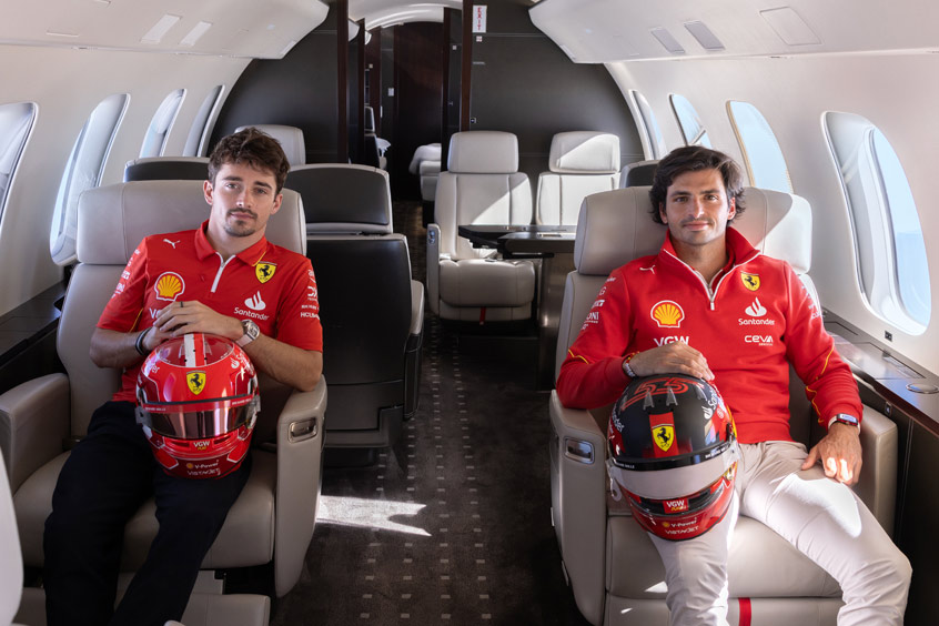 At the core of VistaJet's dedication to the world of sports is its longstanding partnership with motorsports team, Scuderia Ferrari. As an official partner, VistaJet plays a vital role in flying Ferrari's Formula 1 drivers, Charles Leclerc and Carlos Sainz, to races around the globe. This partnership, marked by the VistaJet logo on Ferrari's cars, helmets and racing gear, reflects a shared passion for speed, precision and excellence. With often only days between Grands Prix, VistaJet's reach across continents enables Ferrari's drivers and team to arrive in optimum condition and further utilise their time off the track to prepare for the race.