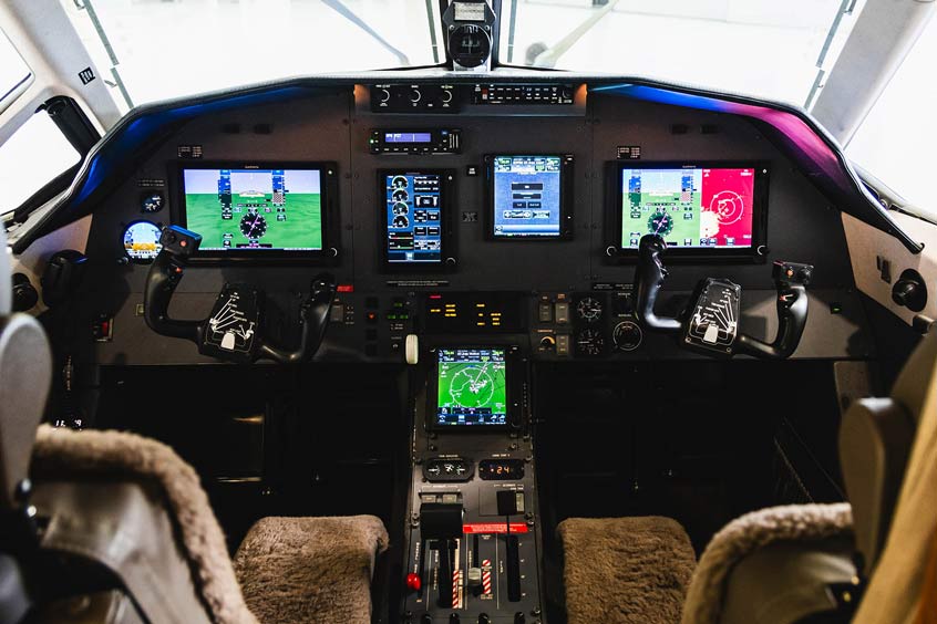 The new Garmin suite improves situational awareness and cockpit efficiency with features like dual G600TXi systems, GTN-750 WAAS GPS, and a GFC600 digital autopilot. “This upgrade transforms the flight deck with more advanced yet user-friendly avionics, giving operators the tools and confidence to excel on every flight,” says Drew Stiles, avionics lead technician at FJC.